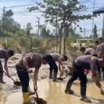 TBnews, Pidie – Personel Polres Pidie bersama warga masyarakat melaksanakan kegiatan pembersihan lumpur pasca bencana banjir di Gampong Tanjong, Kecamatan Kembang Tanjong, Kabupaten Pidie. Kegiatan tersebut dilakukan di sejumlah titik terdampak, antara lain halaman Meunasah Gampong Tanjong, lingkungan Kantor Keuchik, penanganan abrasi pada tanggul Sungai Krueng Tiro, serta pembersihan lumpur di Tempat Pemakaman Umum (TPU) Gampong Tanjong.