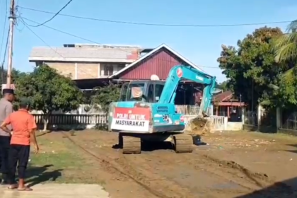 TBnews, Pidie – Personel Polres Pidie bersama warga masyarakat melaksanakan kegiatan pembersihan lumpur pasca bencana banjir di Gampong Tanjong, Kecamatan Kembang Tanjong, Kabupaten Pidie. Kegia...