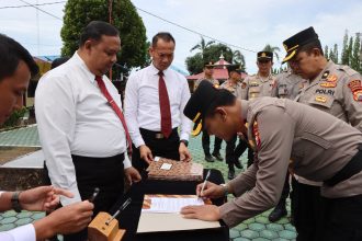 TBnews, BENGKULU – Kapolda Bengkulu Irjen Pol. Mardiyono, S.I.K., M.Si. bersama Ketua Bhayangkari Daerah Bengkulu meninjau pelaksanaan program Makan Bergizi Gratis (MBG) yang digelar oleh Satuan Pelayanan Pemenuhan Gizi (SPPG) Polda Bengkulu di SD Negeri 75 Kota Bengkulu, Jumat (24/10/2025). Kegiatan ini turut dihadiri Wakapolda Bengkulu Brigjen Pol. Dicky Sondani S.I.K., M.H.,, Pejabat Utama Polda, serta jajaran personel Polda Bengkulu.