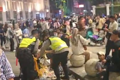 TBnews, Yogyakarta — Personel Polresta Yogyakarta melakukan pembersihan sampah usai pengamanan malam pergantian tahun di kawasan Titik Nol Kilometer Yogyakarta, Kamis (1/1/2026) dini hari. Aksi terseb...