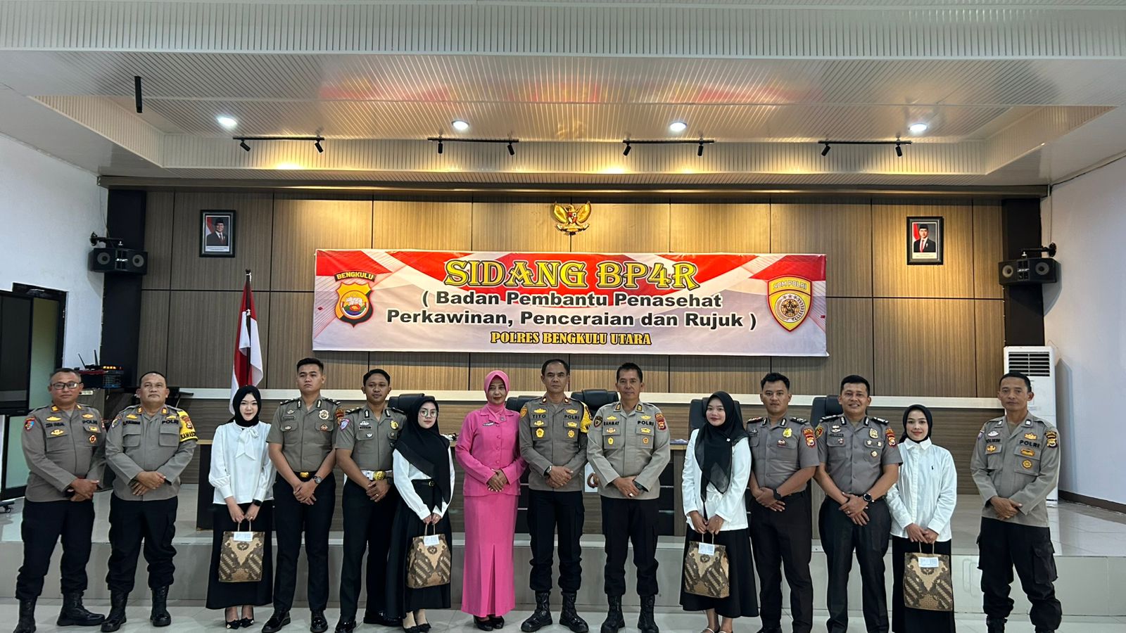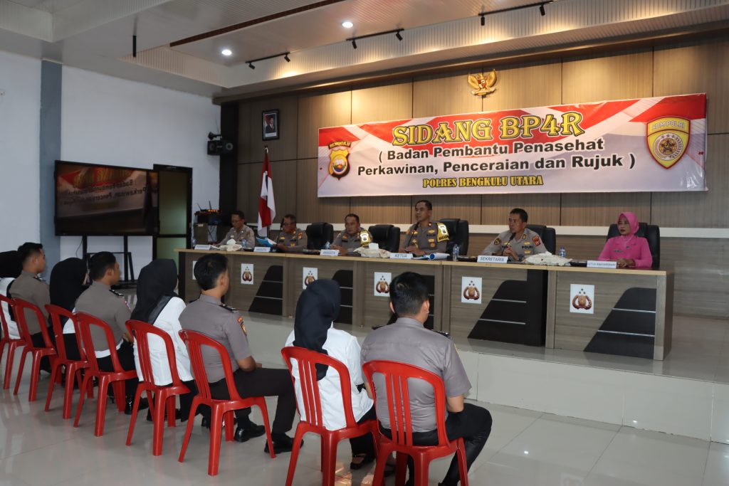 TBnews, Bengkulu Utara – Wakapolres Bengkulu Utara Kompol Januri Sutirto S.H. memimpin pelaksanaan Sidang BP4R (Badan Pembantu Penasehat Perkawinan, Perceraian dan Rujuk) bagi personel Polres Bengkulu Utara yang akan melangsungkan pernikahan, Jumat (06/02/2026), bertempat di Aula Amarta Bhayangkara.
