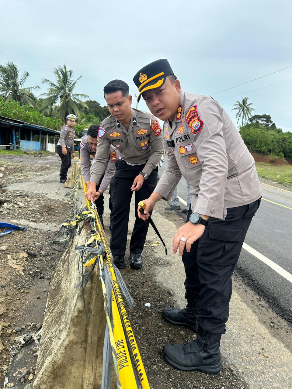 Sebagai langkah cepat dan preventif untuk meminimalisir risiko kecelakaan, personel Sat Lantas dan Sat Samapta langsung melakukan pemasangan police line serta rambu-rambu peringatan di titik-titik terdampak. Pemasangan ini bertujuan agar pengendara yang melintas, terutama pada malam hari, dapat lebih waspada terhadap penyempitan jalan atau potensi amblas.