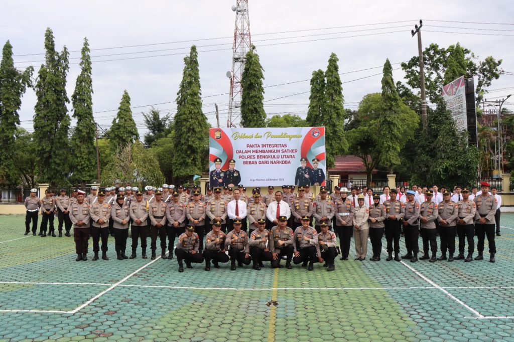 TBnews , Bengkulu Utara – Dalam rangka mewujudkan lingkungan kerja yang bersih dari penyalahgunaan narkoba, Polres Bengkulu Utara menggelar apel deklarasi dan penandatanganan Pakta Integritas bebas narkoba, Kamis (23/10/2025).