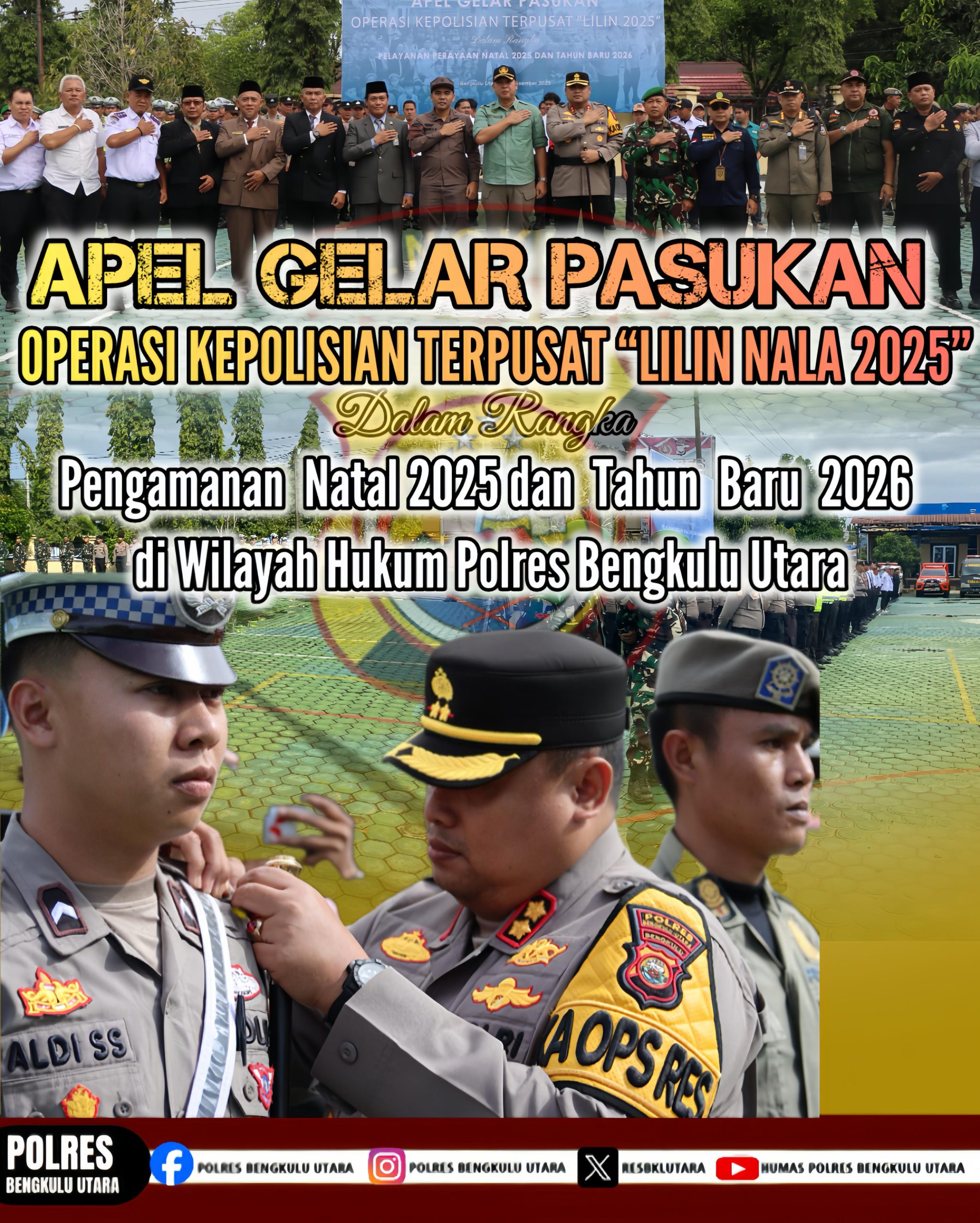 Dengan dilaksanakannya Apel Gelar Pasukan ini, Polres Bengkulu Utara bersama seluruh stakeholder menyatakan kesiapan penuh dalam mengamankan rangkaian perayaan Natal 2025 dan Tahun Baru 2026 agar berjalan dengan aman, tertib, dan lancar.