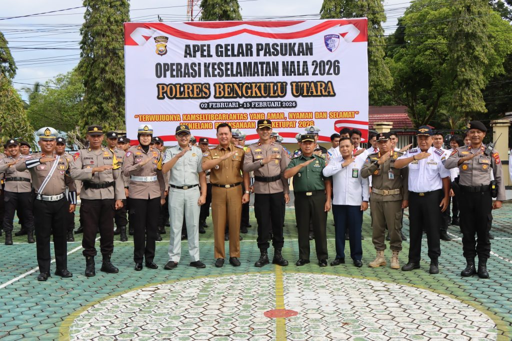 TBnews, Bengkulu Utara – Polres Bengkulu Utara resmi menggelar Apel Gelar Pasukan Operasi Kepolisian Keselamatan Nala Tahun 2026 pada Senin, 2 Februari 2026, pukul 09.00 WIB, di Lapangan Polres Bengkulu Utara.