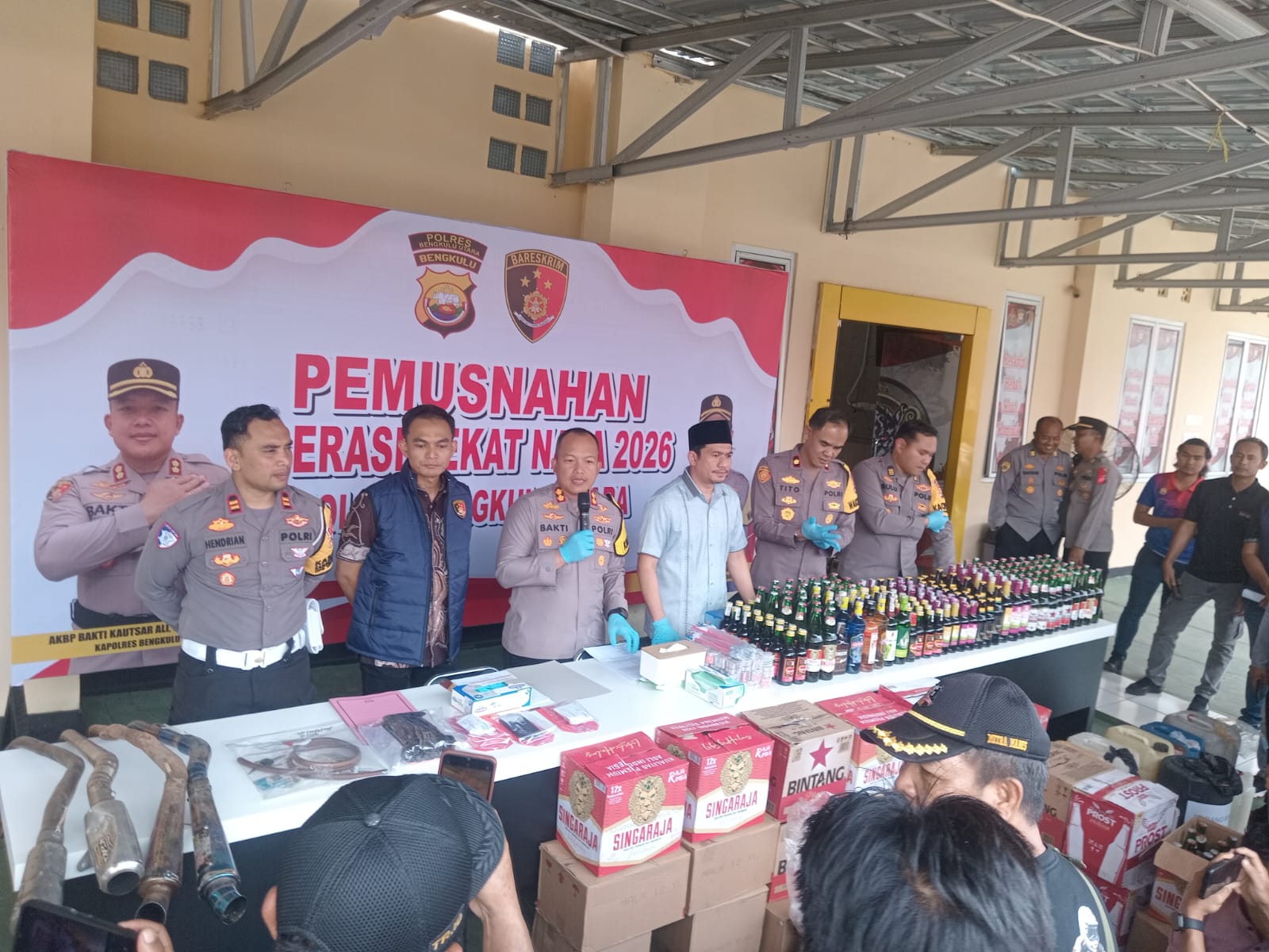 Usai kegiatan press release, Polres Bengkulu Utara juga melakukan pemusnahan sejumlah barang bukti hasil Operasi Pekat Nala I Tahun 2026, di antaranya minuman keras dan petasan, sebagai bentuk komitmen kepolisian dalam memberantas penyakit masyarakat di wilayah hukum Polres Bengkulu Utara.
